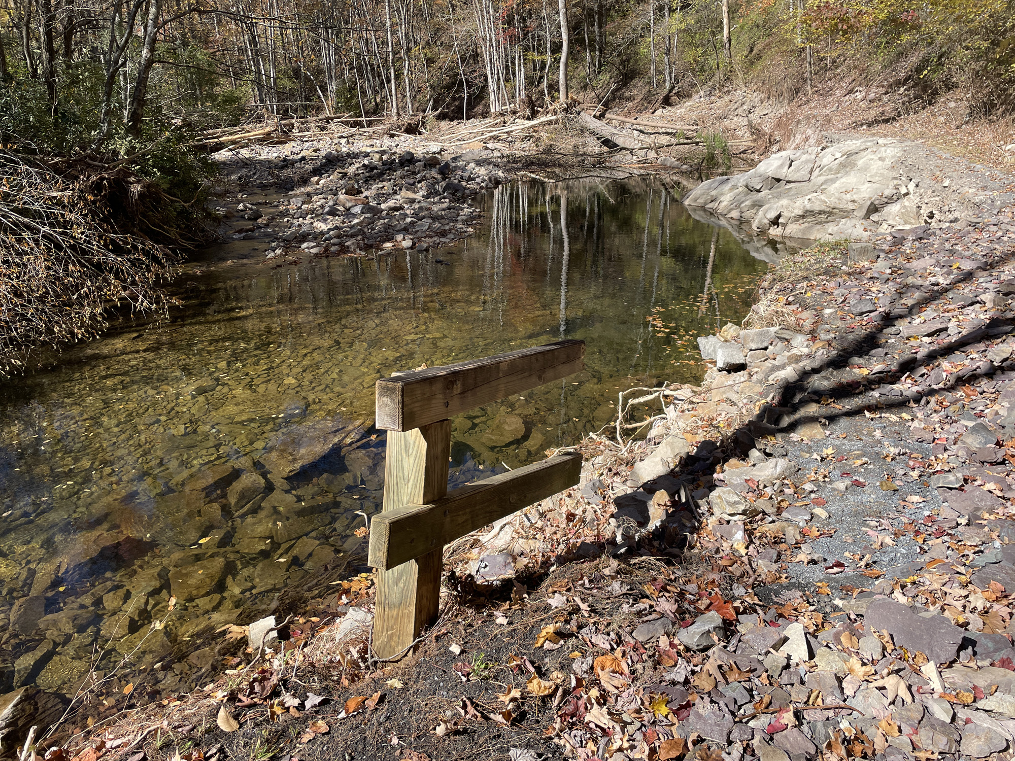 Example near Trestle 37 of how Helene ate away the Creeper's trailbed.