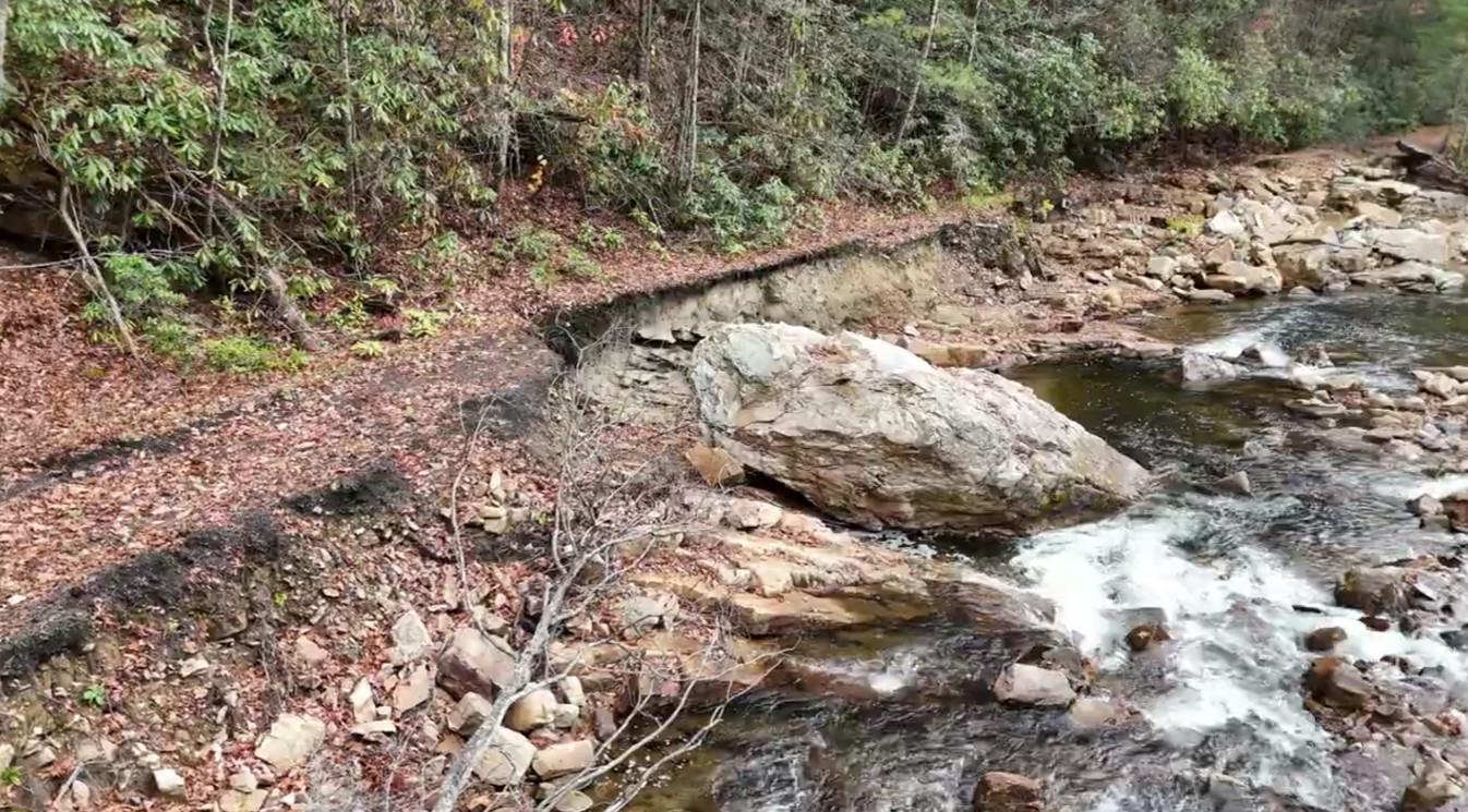 Low water flyover of Laurel Creek next to the VCT